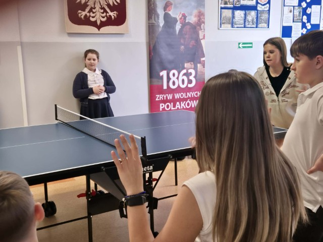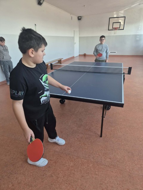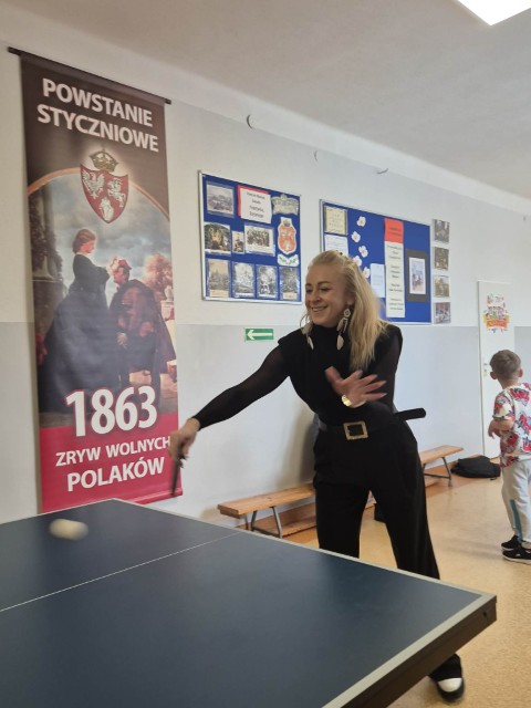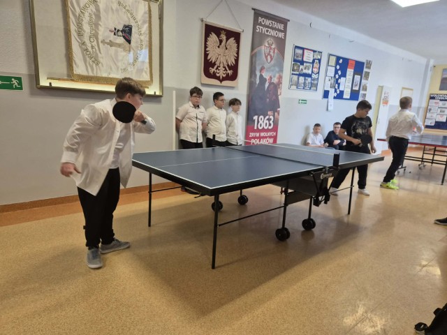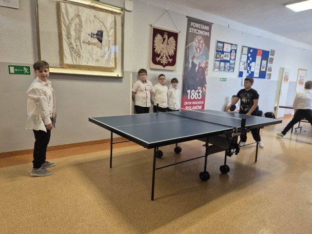 W naszej placówce na szkolnym korytarzu niedawno pojawił się nowy stół do ping-ponga, który został zakupiony w ramach Ogólnopolskiego Konkursu dla uczniów szkół podstawowych „Spółdzielnia Dobrych Serc” w programie Talentowisko. Od razu wzbudził on ogromne zainteresowanie wśród uczniów. Z tej okazji postanowiono zorganizować szkolny turniej tenisa stołowego, aby wszyscy chętni mogli sprawdzić swoje umiejętności sportowe oraz miło spędzić czas. W zawodach wzięli udział uczniowie z różnych klas. Rozgrywki przebiegały w przyjaznej atmosferze, a uczestnicy wykazali się nie tylko dobrą kondycją i refleksem, lecz także kulturą gry oraz sportową postawą. Każdy mecz dostarczał wielu emocji zarówno zawodnikom, jak i kibicom, którzy licznie pojawiali się, aby wspierać swoich kolegów i koleżanki. Po serii zaciętych pojedynków wyłoniono najlepszych zawodników w poszczególnych kategoriach.