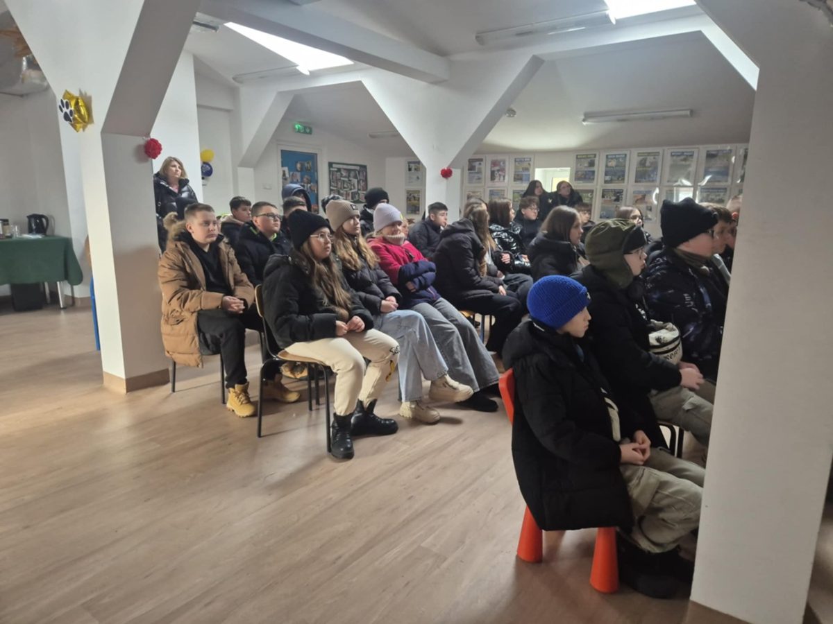 Pierwszym punktem programu była wizyta w schronisku. Uczniowie uczestniczyli w zajęciach edukacyjnych poświęconych tematyce opieki nad zwierzętami, odpowiedzialności za ich los oraz świadomej adopcji. Podczas spotkania pracownicy schroniska omówili najważniejsze zasady właściwej opieki nad zwierzętami domowymi, zwracając szczególną uwagę na to, że decyzja o przyjęciu zwierzęcia do domu powinna być przemyślana i odpowiedzialna. Uczniowie dowiedzieli się, z jakimi trudnościami mierzą się zwierzęta porzucone oraz jak ważną rolę odgrywa adopcja w zapewnieniu im bezpiecznego i kochającego domu.