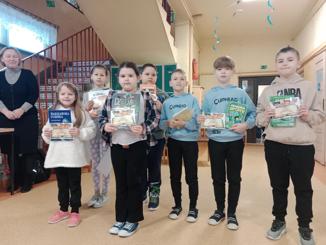 Nagrody książkowe zostały przyznane również za prace w szkolnym konkursie plastycznym dla klas 1 – 3, który odbywał się w ramach popołudniowego „Spotkania z książką”. Najładniej dalsze przygody bohatera książki „Cukierku, ty łobuzie” przedstawili uczniowie: Piotr Winkler, Adam Wilczopolski, Wojciech Wilczopolski, Karol Flasiński, Zofia Adamczyk, Agata Makoś, Michalina Rakuś, Helena Fornal, Ada Niewielska i Julia Niewielska.