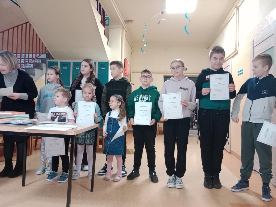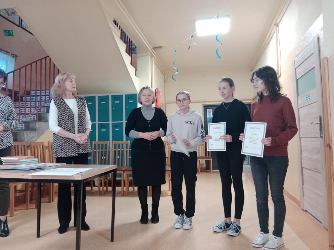 Za udział w konkursie ogólnopolskim „QUO VADIS. Miecz Miłości – w 120. rocznicę przyznania Nagrody Nobla Henrykowi Sienkiewiczowi” dyplomy uczestnictwa otrzymały: Wiktoria Kołodziej, Sara Rachoń i Nikola Chmielewska. Uczennica Wiktoria Kołodziej znalazła się wśród indywidualnych laureatów tego przedsięwzięcia i jej praca plastyczna została wyróżniona na stronie organizatora konkursu. Za to wyróżnienie przewidziana została nagroda „do kina z książką”.