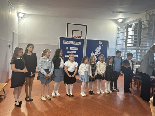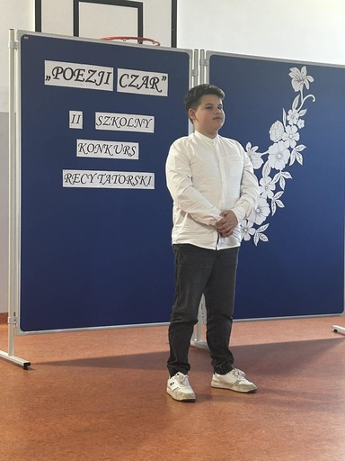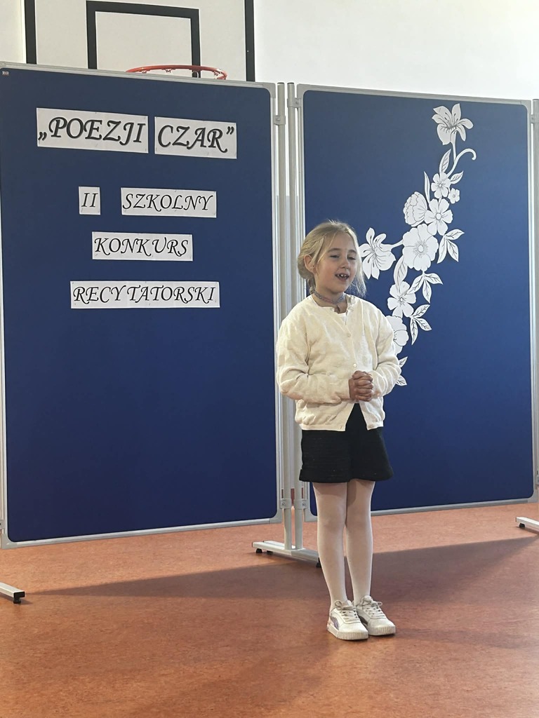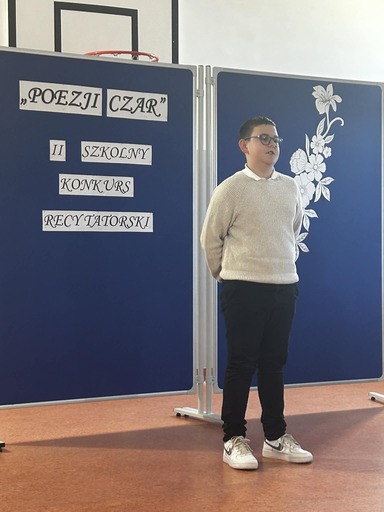 W dniu 16 kwietnia 2026 r. w naszej szkole odbył się II Szkolny Konkurs Recytatorski „Poezji Czar”. Do artystycznych zmagań przystąpiło ponad trzydziestu uczniów. Każdy z uczestników wykazał się piękną deklamacją wybranego przez siebie wiersza. Konkurs przebiegał w czterech grupach wiekowych.