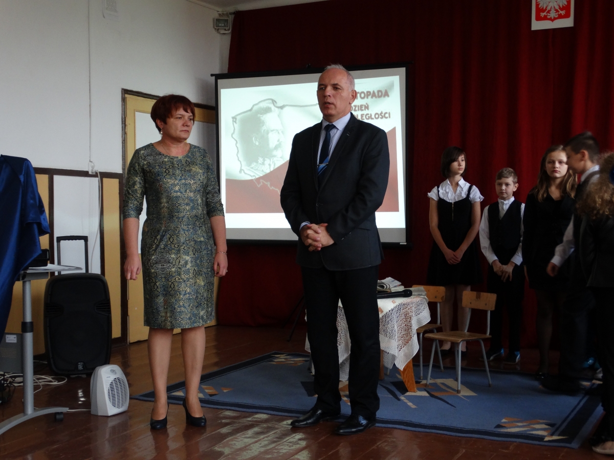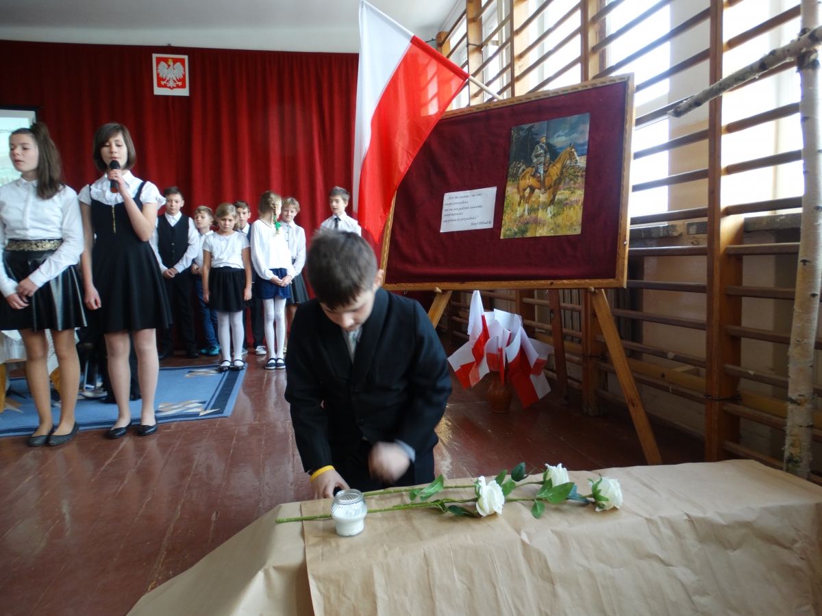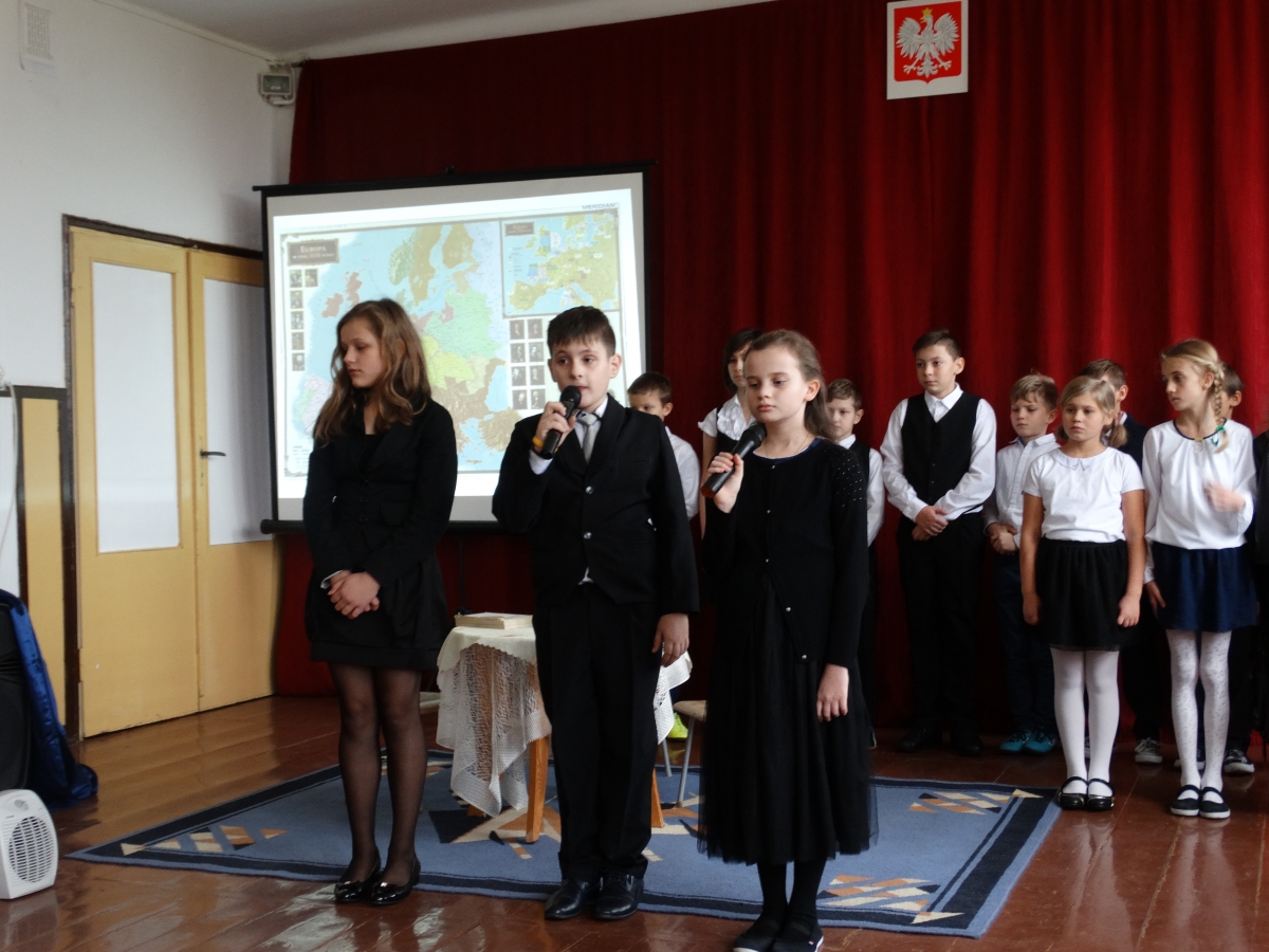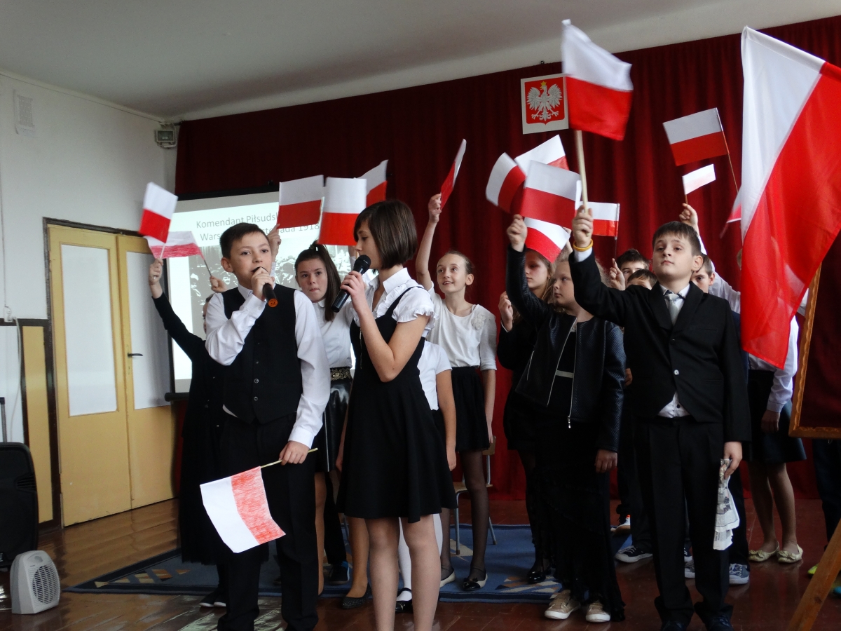 W naszej szkole rónież uroczyście obchodziliśmy 98 rocznicę odzyskania przez Polskę wolności. Z tej właśnie okazji uczniowie i pracownicy szkoły mieli przyjemność uczestniczyć w akademii przygotowanej przez nauczycielkę historii – panią Anetę Kalinowską. W części artystycznej wzięli udział uczniowie klas IV – VI. Młodzi aktorzy recytowali wiersze, śpiewali pieśni patriotyczne i odegrali scenkę. W części końcowej głos zabrał Pan Dyrektor Mieczysław Muszkiewicz, który podziękował młodym artystom i ich opiekunce, jak rónież zaprosił zebranych do wzięcia udziału w gminych obchodach Święta Niepodległości.
