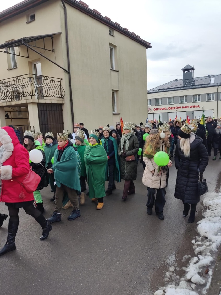 6 stycznia 2025 roku w naszej gminie Józefów nad Wisłą odbył się po raz pierwszy Orszak Trzech Króli. Wszystkie szkoły działające na terenie gminy brały udział w orszaku. Każda jednostka otrzymała zadnie i rolę. Nasi uczniowie przygotowali Orszak Heroda, przygotowali stroje i godnie prezentowali naszą szkołę, recytując swoje role. Wypadli znakomicie! W orszaku brali również rodzice, wspólnie szliśmy ulicami Józefowa nad Wisła, a cały orszak zakończył się w szkole w Józefowie nad Wisłą, gdzie na wszystkich uczestników czekał ciepły poczęstunek.