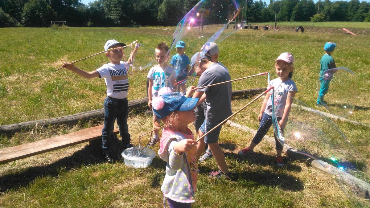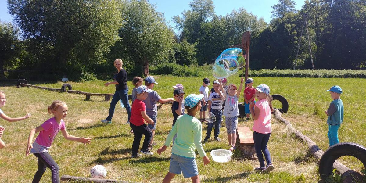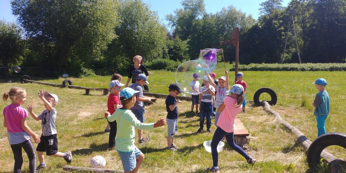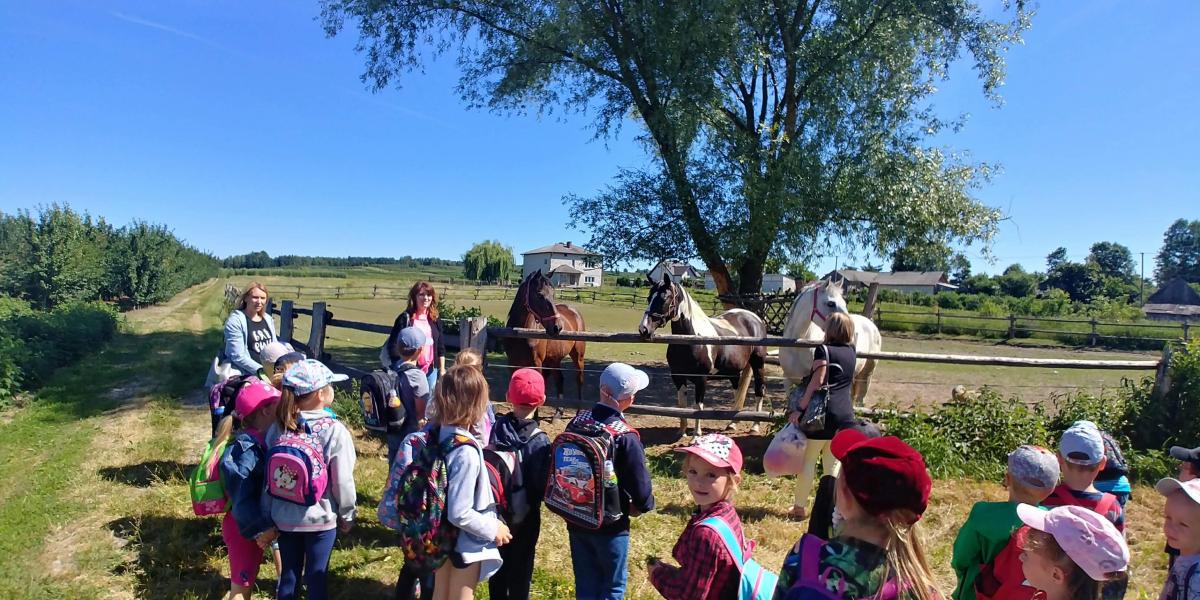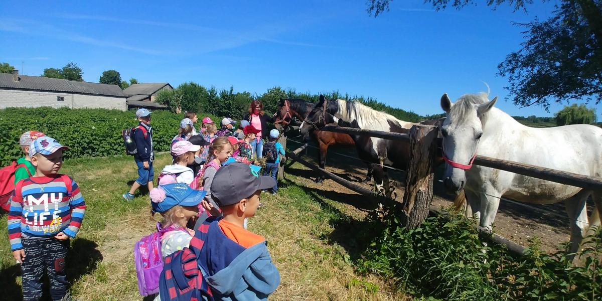 Dnia 07.06.2018r. przedszkolaki odwiedziły gospodarstwo agroturystyczne w Chruślinie. Dzieci miały okazję obejrzeć konie, wzięły udział w zabawach integracyjnych na świeżym powietrzu. Ogromną frajdę sprawiło dzieciom puszczanie baniek mydlanych.