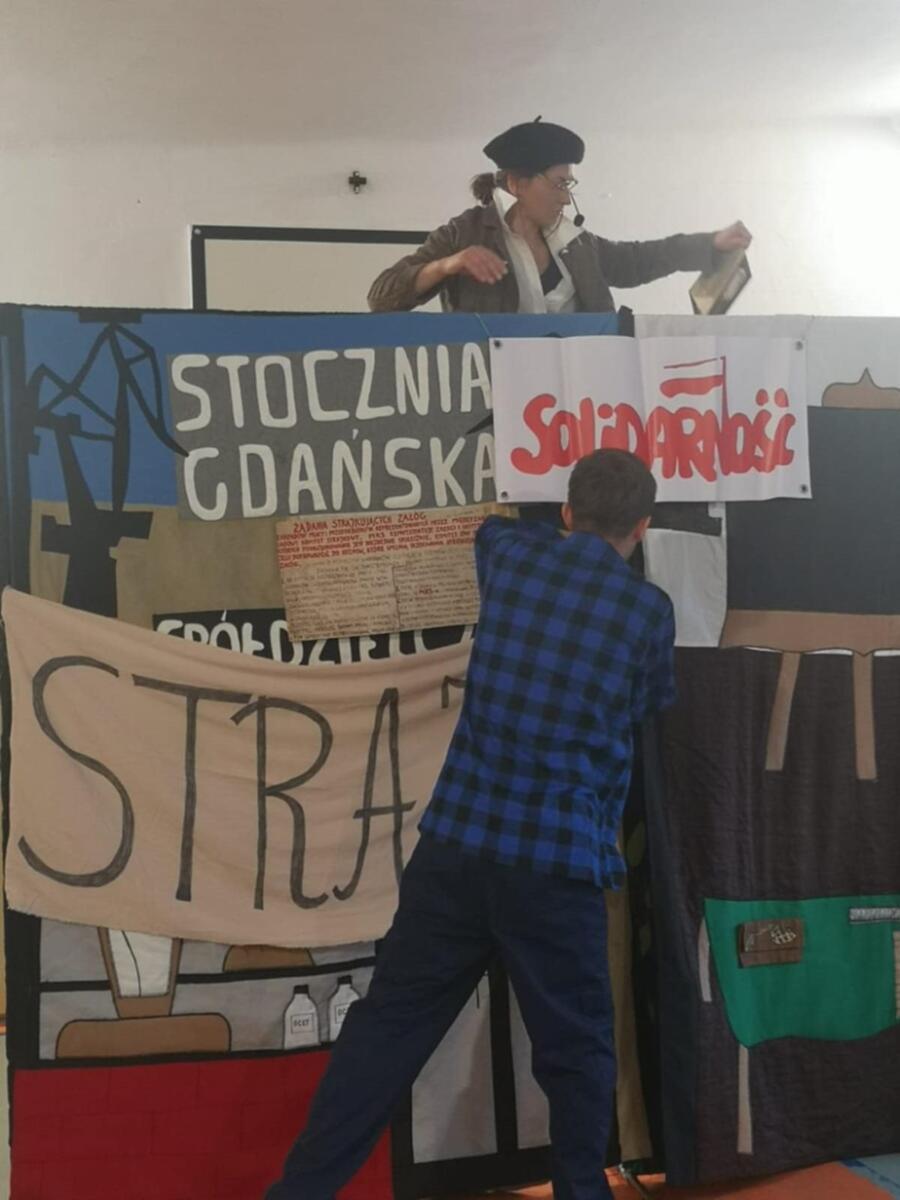 Uczniowie uczestniczyli w przedstawieniu – na żywo brali udział i grali wraz z aktorami. Młodsi mieli okazję poznać historię naszego kraju a starsi utrwalić wiedzę z historii najnowszej.