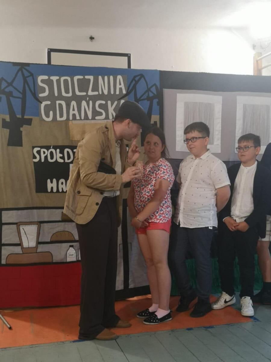 28 maja 2025 roku w naszej szkole odbył się spektakl „Historia Wiktorii i Franka”. Sztuka opowiadała historię powstania Solidarności przez pryzmat dwóch dziesięciolatków – Wiktorii z 1981 roku z Gdańska i Franka z XXI wieku z Warszawy. Spektakl był sponsorowany przez Instytut Pamięci Narodowej oddział Lublin. Była to doskonała „żywa” lekcja historii.
