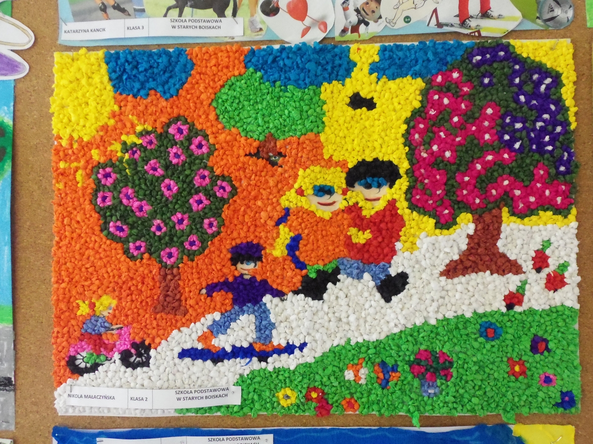W maju odbył się międzyszkolny konkurs plastyczny „Sport to zdrowie” w ramach programu profilaktycznego „W zdrowym ciele zdrowy duch”, realizowanego w tym roku w naszej szkole . Wzięli w nim udział uczniowie małych szkół naszej gminy – w Chruślinie, Starych Boiskach oraz Chruślankach Józefowskich. Konkurs skierowany był do dzieci z klas I – III. Do naszej szkoły napłynęło wiele ciekawych prac – tu szczególnie wyróżnili się uczniowie ze starych Boisk – a i nasi uczniowie chętnie wzięli udział w konkursie. Spośród nadesłanych prac plastycznych wyłoniono najciekawsze i wykonano z nich wystawkę na korytarzu szkolnym. Wystawkę można było oglądać podczas Festynu Rodzinnego, który odbywał się w naszej szkole 5 czerwca. Autorzy wyróżnionych prac otrzymali nagrody z funduszu Gminnej Komisji Rozwiązywania Problemów Alkoholowych w Józefowie nad Wisłą. Szczególnie podobały nam się prace Nikoli Małaczyńskiej, Natalii Uzar i Kacpra Komorowskiego. Wszystkim uczestnikom dziękujemy za udział w konkursie i duże zaangażowanie w wykonanie ciekawych prac.