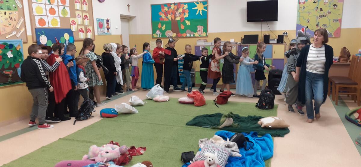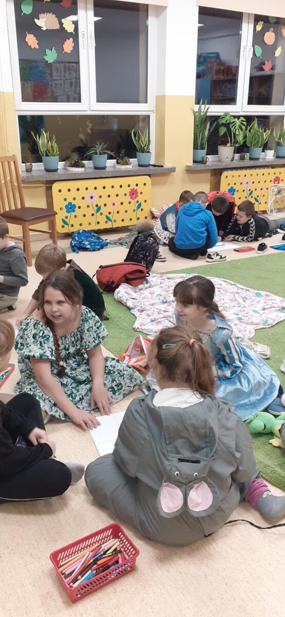 CZYTANIE MĄDRA RZECZ! – SPOTKANIE Z KSIĄŻKĄ – Pałac Młodzieży w Nowym Sączu13 listopada 2024r. uczniowie klas 1-3 wzięli udział w popołudniowym „Spotkaniu z książką”. Dzieci przyszły do szkoły przebrane w stroje różnych postaci bajkowych. Mogły przynieść ze sobą ulubione maskotki, poduszki, kocyki. Wzięły udział w zabawach ruchowych ze śpiewem, słuchały fragmentu książki „Cukierku, ty łobuzie!”, a następnie rysowały w grupach dalsze przygody głównego bohatera. Część rysunkowa zajęć przebiegała w formie konkursu. Był również test wiadomości o różnych bajkach i baśniach. Uczniowie chętnie skorzystali z przygotowanego poczęstunku – były smaczne gofry i popcorn. Na koniec zajęć można było potańczyć w rytmie ulubionych piosenek dla dzieci. Organizatorkami „Spotkania z książką” były wychowawczynie dzieci: p. A. Kalinowska, p. Joanna Mróz i p. K. Piłat.