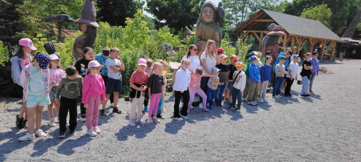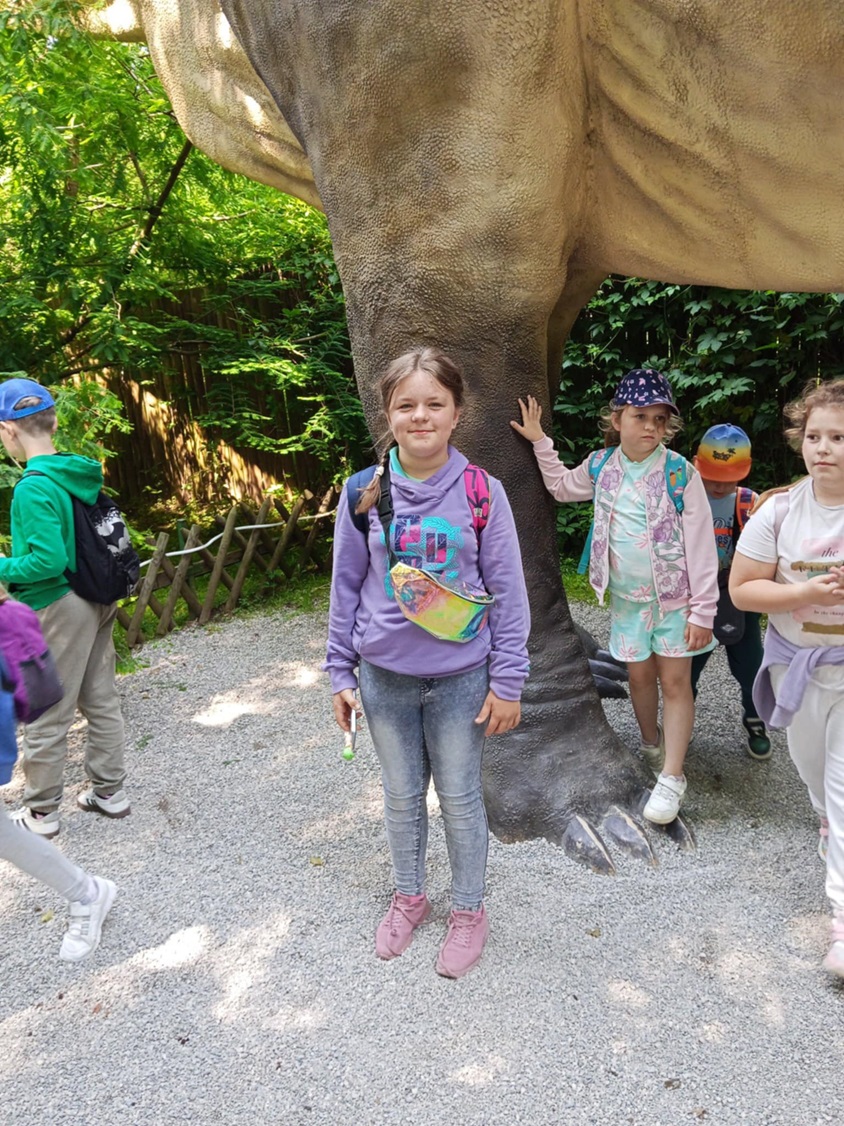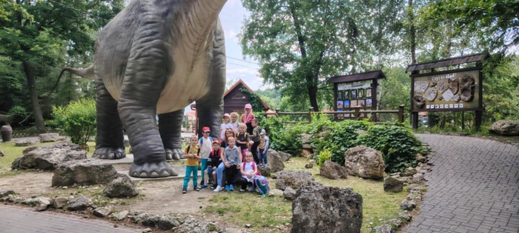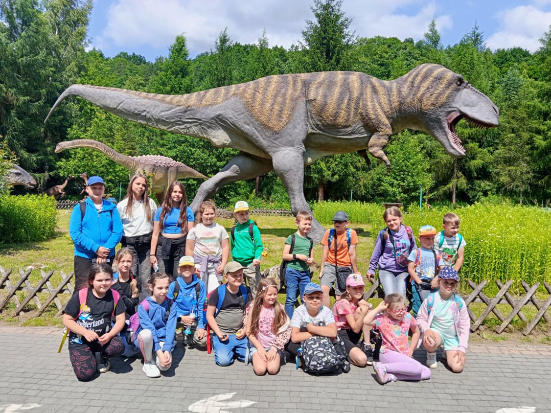 12 czerwca 2025r. odbyła się wycieczka dzieci z oddziałów przedszkolnych i klas I – III oraz V do Jura Parku w Bałtowie. Najpierw odbyliśmy przejażdżkę amerykańskim autobusem pomiędzy zwierzętami współcześnie żyjącymi, rozmieszczonymi na wielohektarowym terenie. W dolnej części Zwierzyńca zobaczyliśmy ciekawe gatunki ssaków i ptaków. Zwiedziliśmy magiczne miejsce zwane Sabatówką. Wędrując ścieżkami przez park widzieliśmy modele dinozaurów i innych stworzeń. Ogromne wrażenie zrobiło Kino Emocji 5D. Za pomocą technologii trójwymiarowego przekazu przenieśliśmy się miliony lat wstecz do świata prehistorycznych gadów. Z wycieczki do Krainy Dinozaurów wszyscy wrócili pełni wrażeń i zadowoleni.