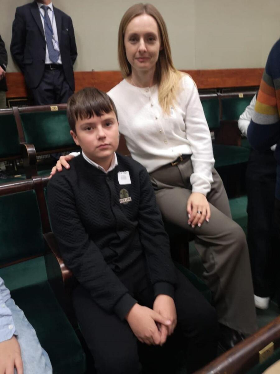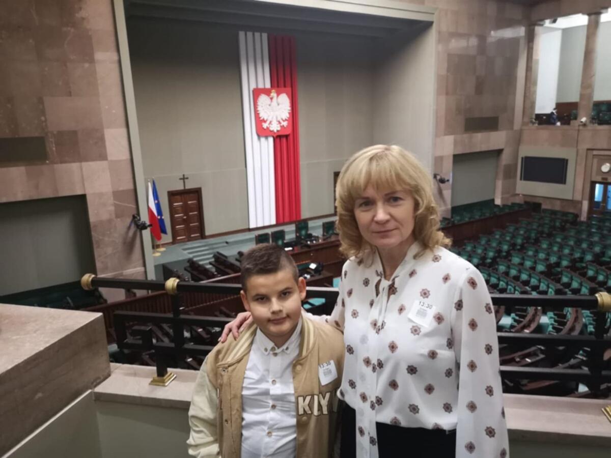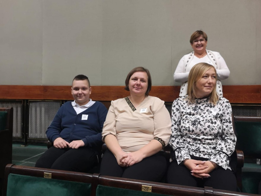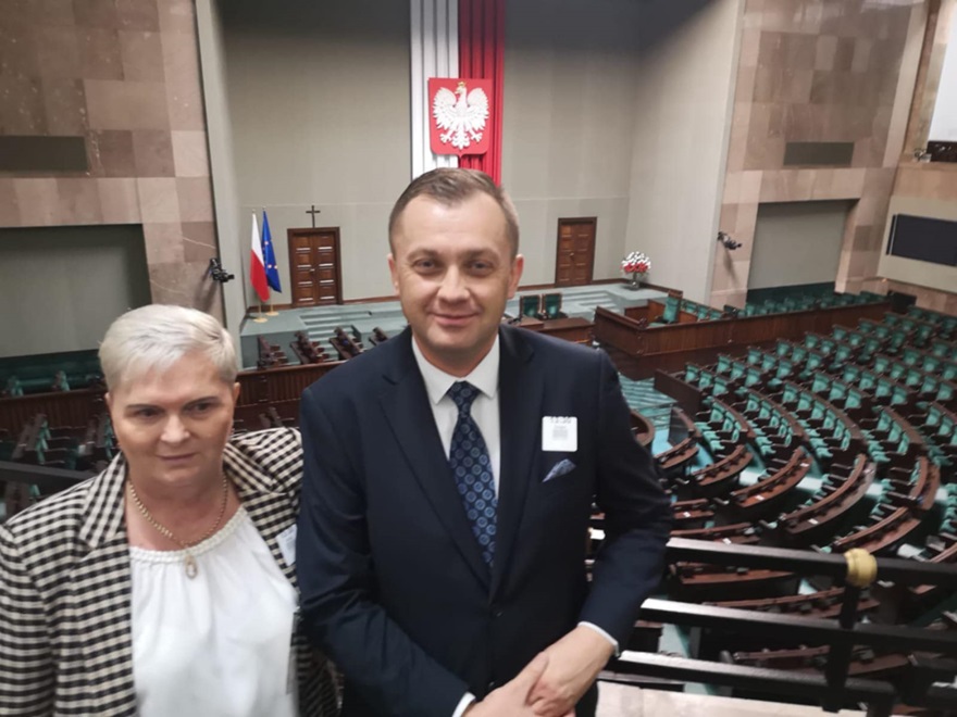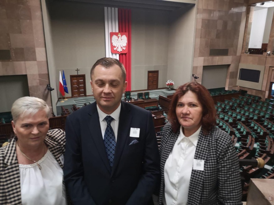Następnie uczniowie udali się do Sejmu. Pani Przewodnicząca Rady Miejskiej, pani Irena Kręcisz zorganizowała spotkanie z Posłem na Sejm RP, panem Mirosławem Maliszewskim. Grupa zwiedziła salę sejmową, zapoznała się