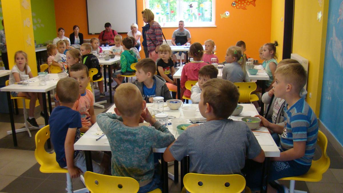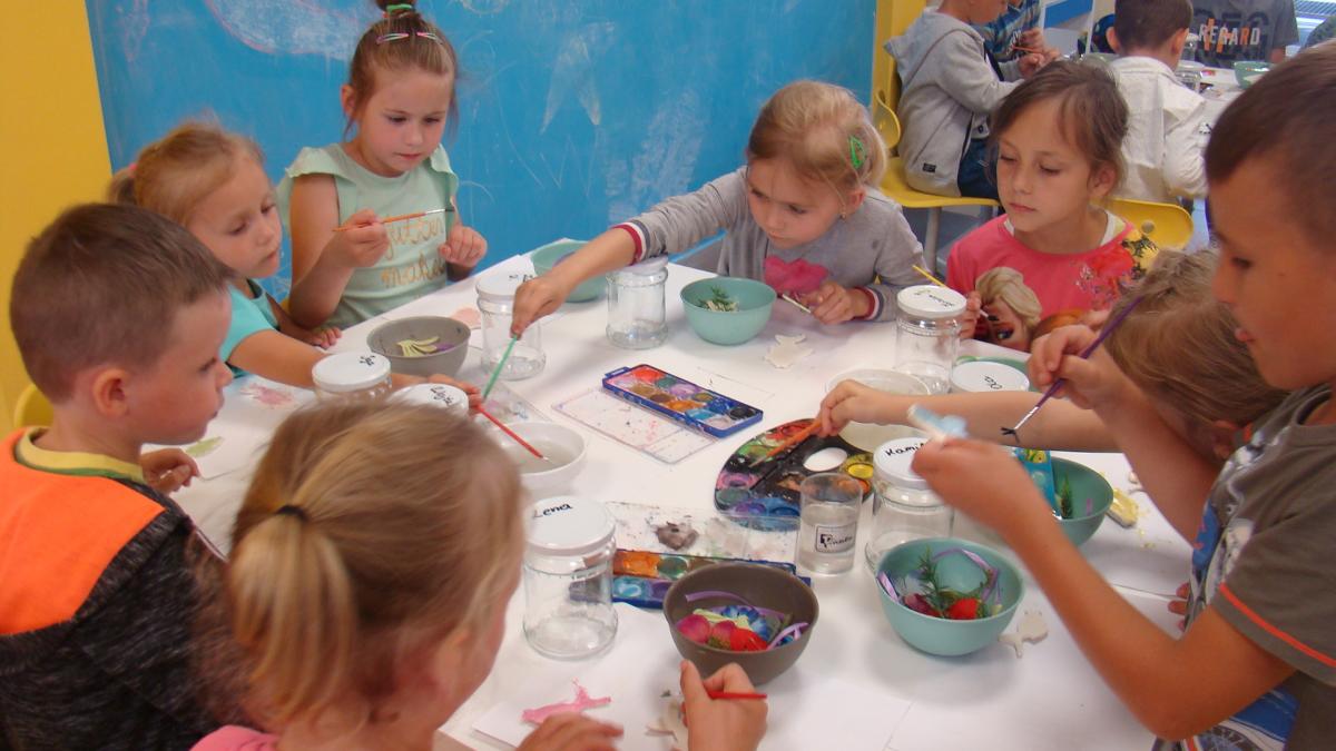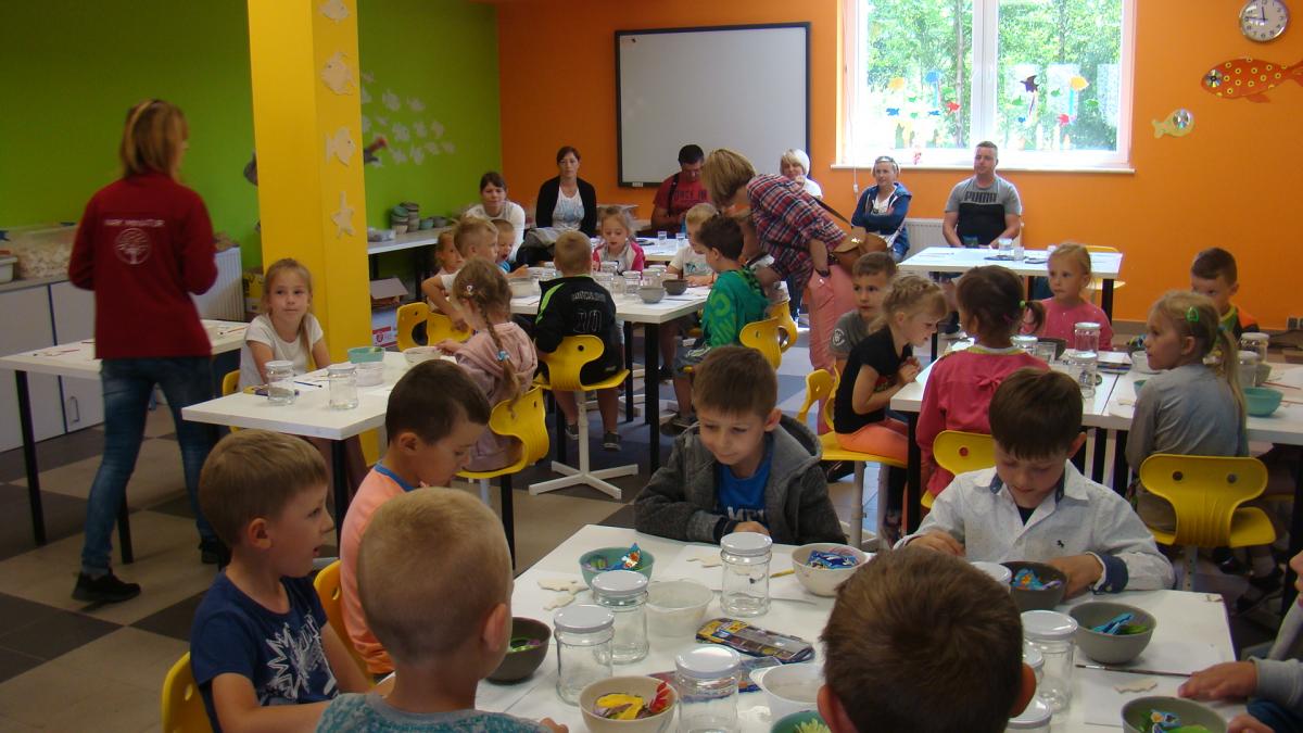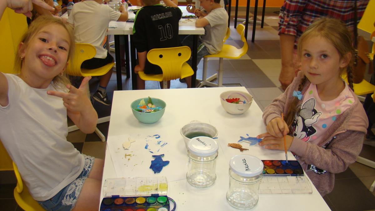 Po zwiedzaniu wystaw Oceaniki, uczniowie wzięli udział w warsztatach plastycznych, podczas których wykonywali swoje „akwaria” w słoiku, z przygotowanych wcześniej materiałów. Następnie, po takich ciekawych „lekcjach”, przyszedł czas na relaks w Krainie Zabawy. Dzieci miały do dyspozycji kilka dmuchańców oraz karuzelę, więc zabawa trwałą prawie godzinę. Po obiedzie w restauracji i krótkim odpoczynku uczniowie zwiedzili jeszcze Brzozową Zagrodę z udomowionymi zwierzętami.