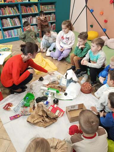 Po teatralnych emocjach uczestnicy wyjazdu udali się do Biblioteki „Nowe Horyzonty”. Tam dzieci miały okazję poznać to wyjątkowe miejsce, w którym książki otwierają drzwi do świata wyobraźni i wiedzy. Pracownicy biblioteki przygotowali specjalne zajęcia związane z tematyką Dnia Ziemi. Uczniowie dowiedzieli się, jak dbać o środowisko na co dzień, a także uczestniczyli w krótkich warsztatach i zabawach edukacyjnych.
