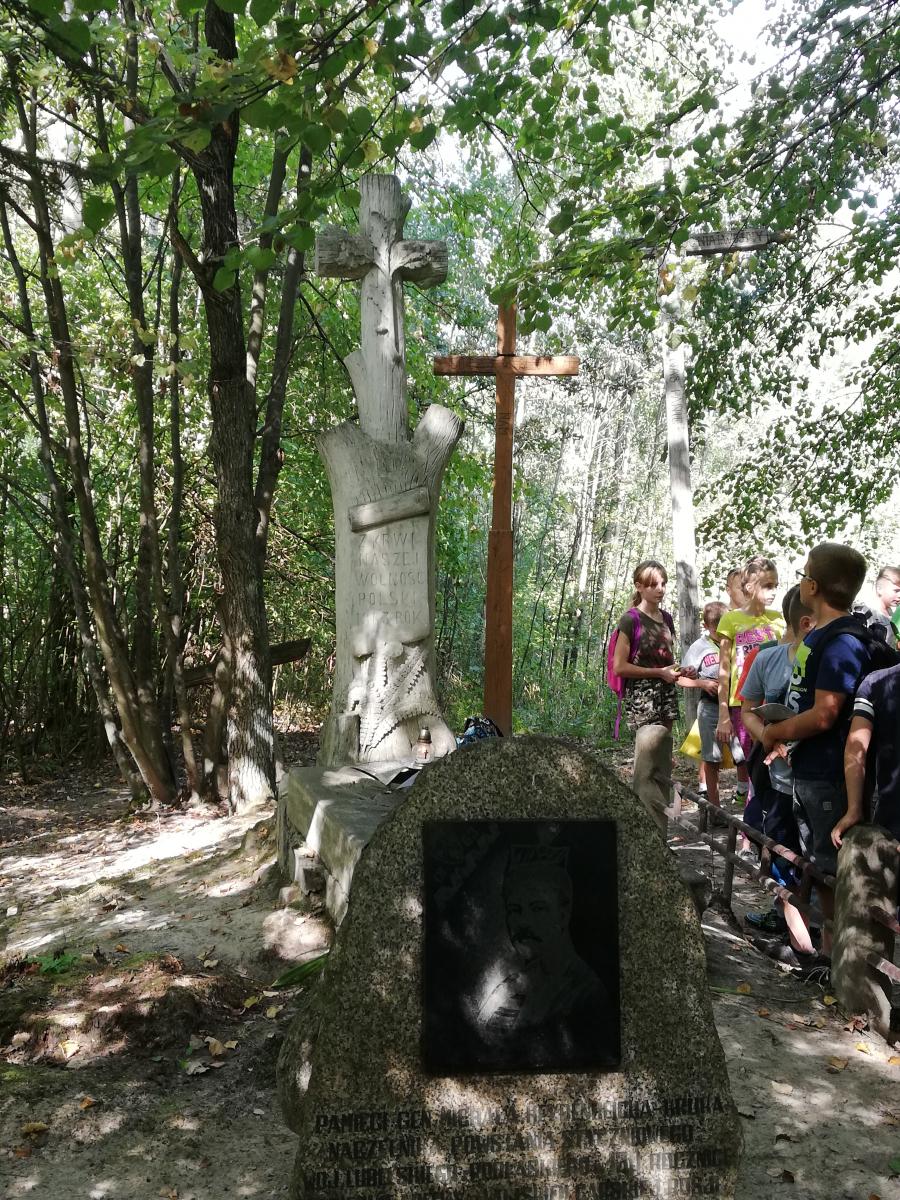 W naszej szkole im. Powstańców Styczniowych w związku z obchodami Dnia Patrona zorganizowano wycieczki na Złotą Górę. W tym roku minęła 155 rocznica bitew Powstania Styczniowego pod Chruśliną. Uczniowie klasy VII i VIII wraz z opiekunkami p. E. Kępowicz i p. A. Kalinowską odwiedzili miejsce pamięci 11 września 2018 roku. Młodzież chętnie i sprawnie uprzątnęła pomnik i jego otoczenie. Uczniowie zapalili znicze i po krótkiej prelekcji, wszyscy odmówili modlitwę za bohaterów Powstania Styczniowego. W czwartek 13 września, hołd Naszemu Patronowi oddali uczniowie klas od 0 do VI z opiekunkami – p. J. Mróz, p. Katarzyną Piłat, p. A. Kalinowską, p. A. Mazur i p. M. Nowak.